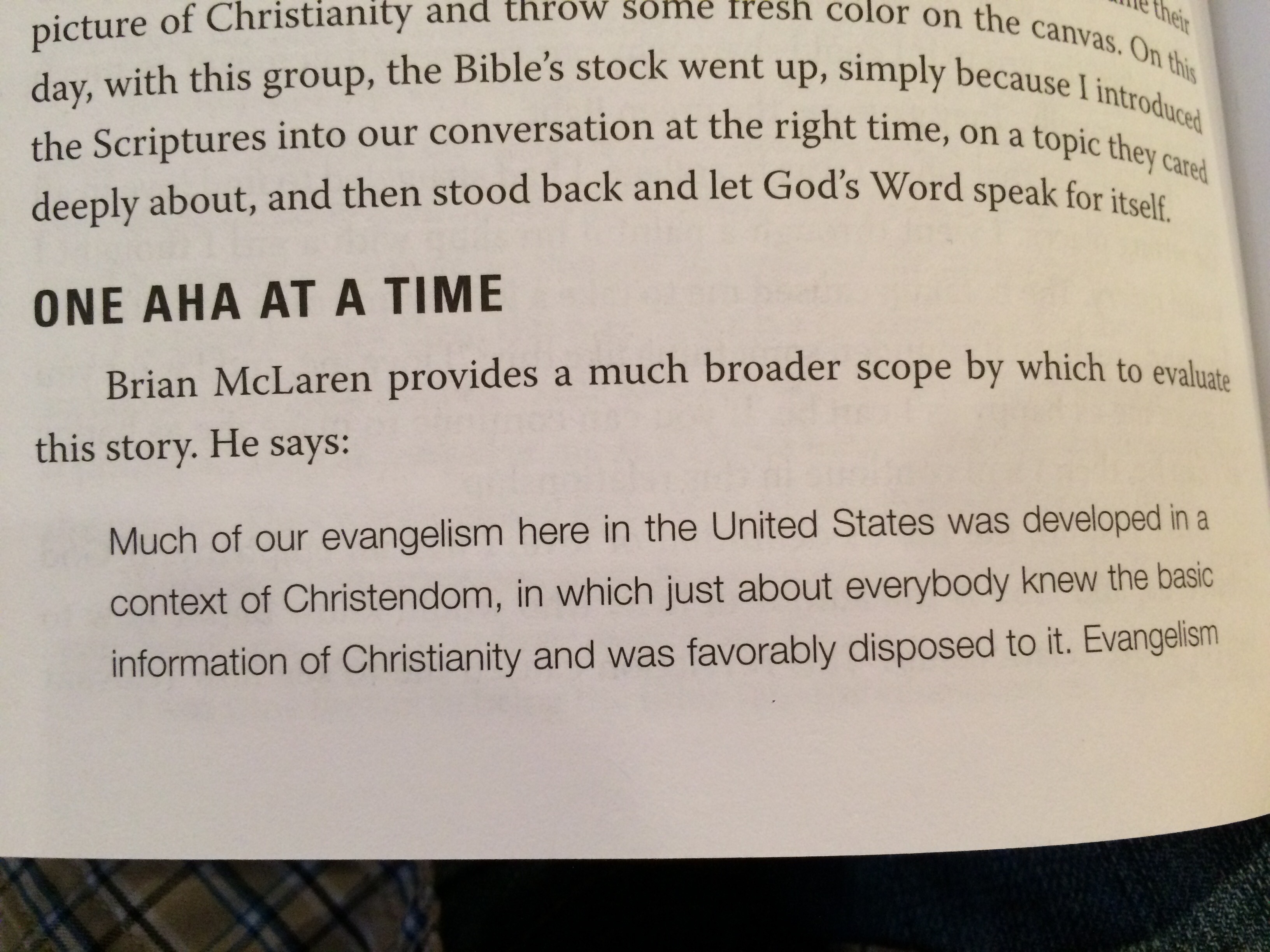 Brian McLaren quote from God Space on change in evangelism landscape in US.